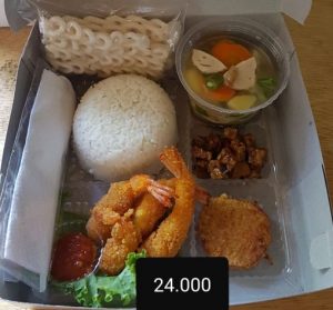 Nasi Putih - Udang Tepung Panir - Galantine Ayam - Tempe Kecap - Sup Sehat - Sambal - Kerupuk