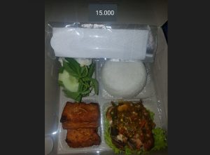 Nasi Putih - Ayam Goreng Laos - Bali Telur - Mie Goreng Sosis - Kering Tempe - Timun - Sambal - Kerupuk