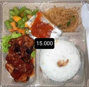 Nasi Putih - Ayam Kecap - Mie Goreng Sosis - Cah Buncis Wortel - Sup Kimlo - Sambal - Kerupuk
