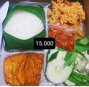Nasi Putih - Ayam Crispy - Tahu Tempe Goreng - Lalapan - Sambal